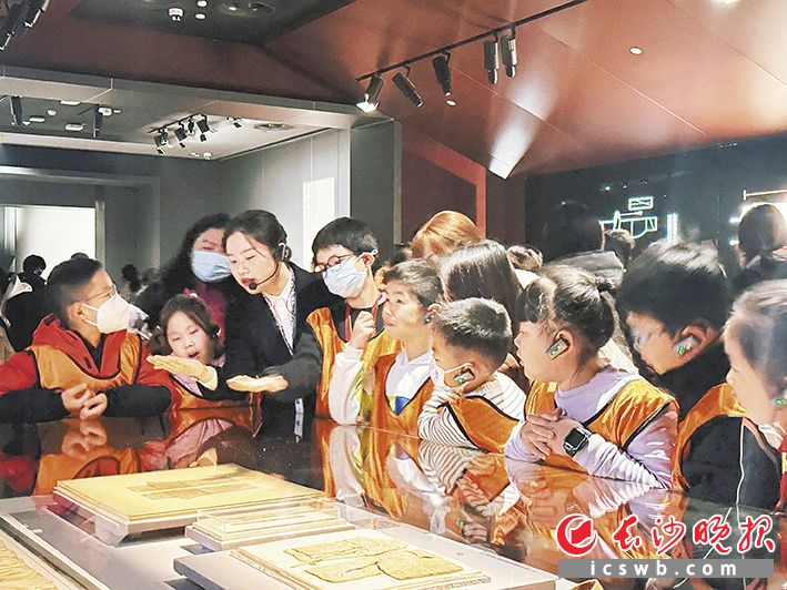 寻景环节结束后,亲子队伍走进省博物馆,开启汉代冬日生活探秘之旅。在长沙马王堆汉墓陈列展厅,竹笥木牌、朱红菱纹罗丝绵袍、信期绣手套等文物,生动还原汉代贵族的衣食智慧;帛书《养生方》与《脉法》中的养生理念,让大家领略了中华健康文化的源远流长;清代《十二月月令图》则将古人围炉数九、拜贺尊长的冬日雅事具象呈现。